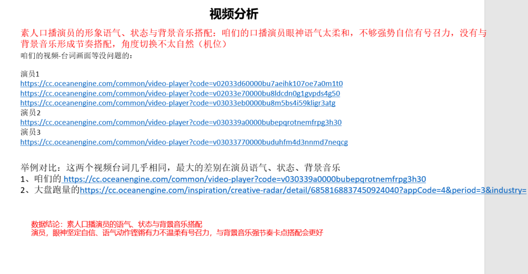 比如:台词前10秒不够吸引用户、演员号召力不足、演员妆容不搭、bgm不能起到正向作用、视频形式不够创新等。