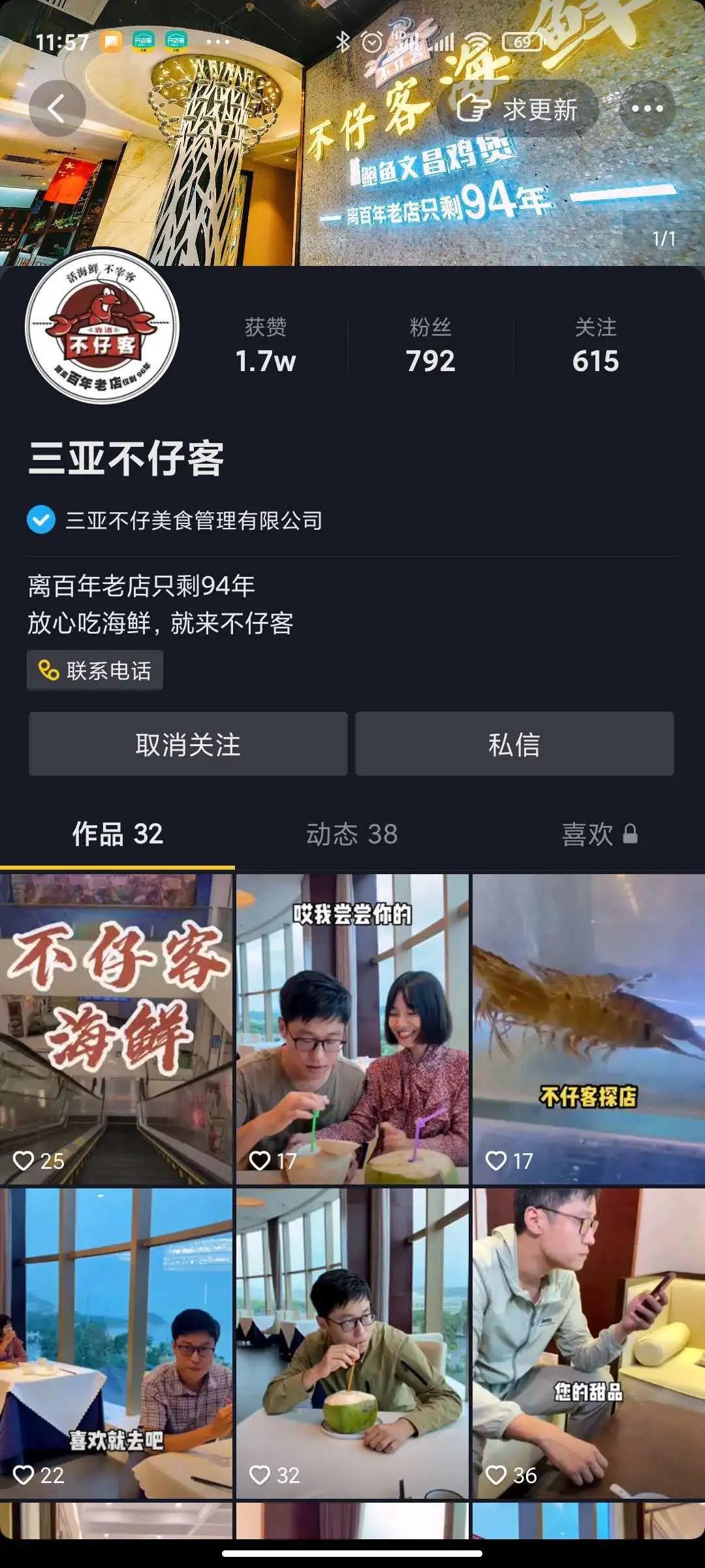 抖音也开通了官方账号,并且上传了32个作品,前期视频以店面动态为主,近期应该是找了专门的拍摄团队,套用网络热门视频套路拍摄了一些以搞笑为主的视频(创始人出境),目前效果只能说一般。