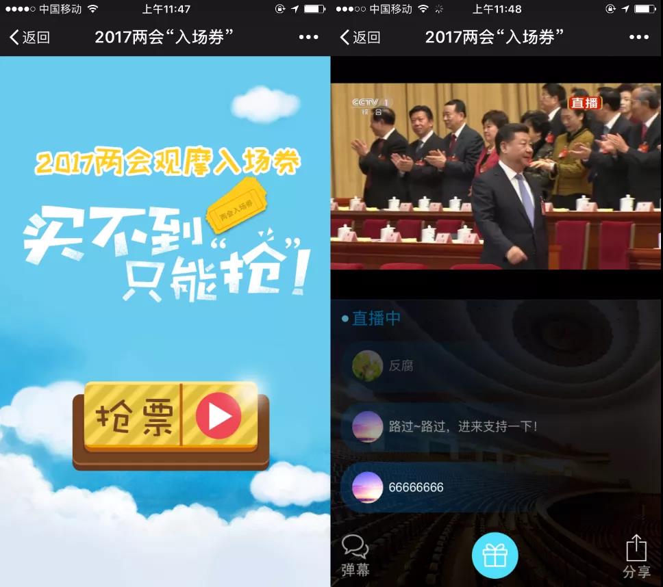 通过抢座的形式实时直播的两会现场,还可以发弹幕和送礼物,沉浸式体验两会现场。互动性更强。