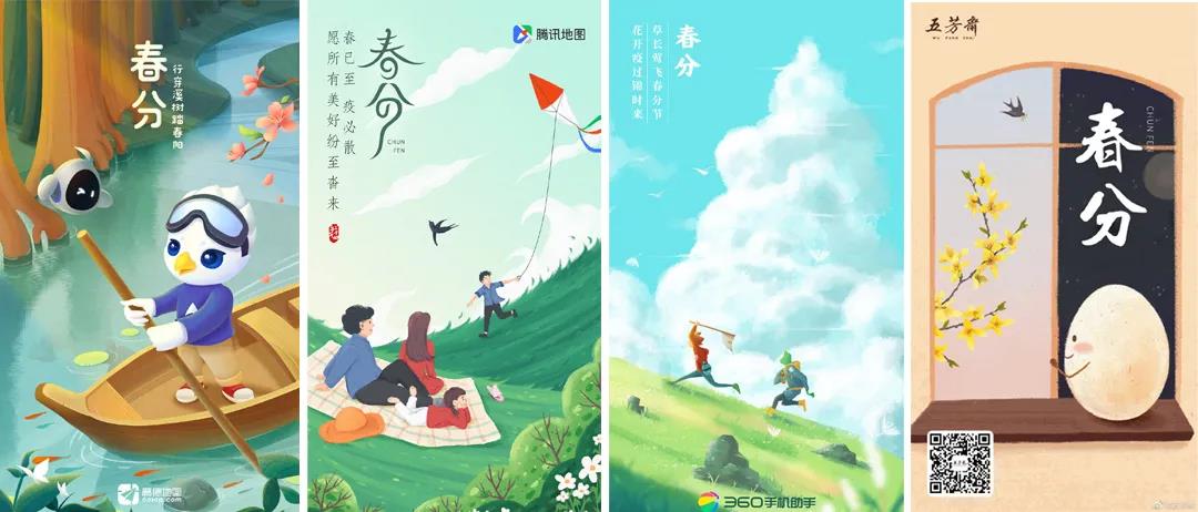 2、春分在天文学上有重要意义,南北半球昼夜平分。所以在海报上也可以借鉴这样的形式。
