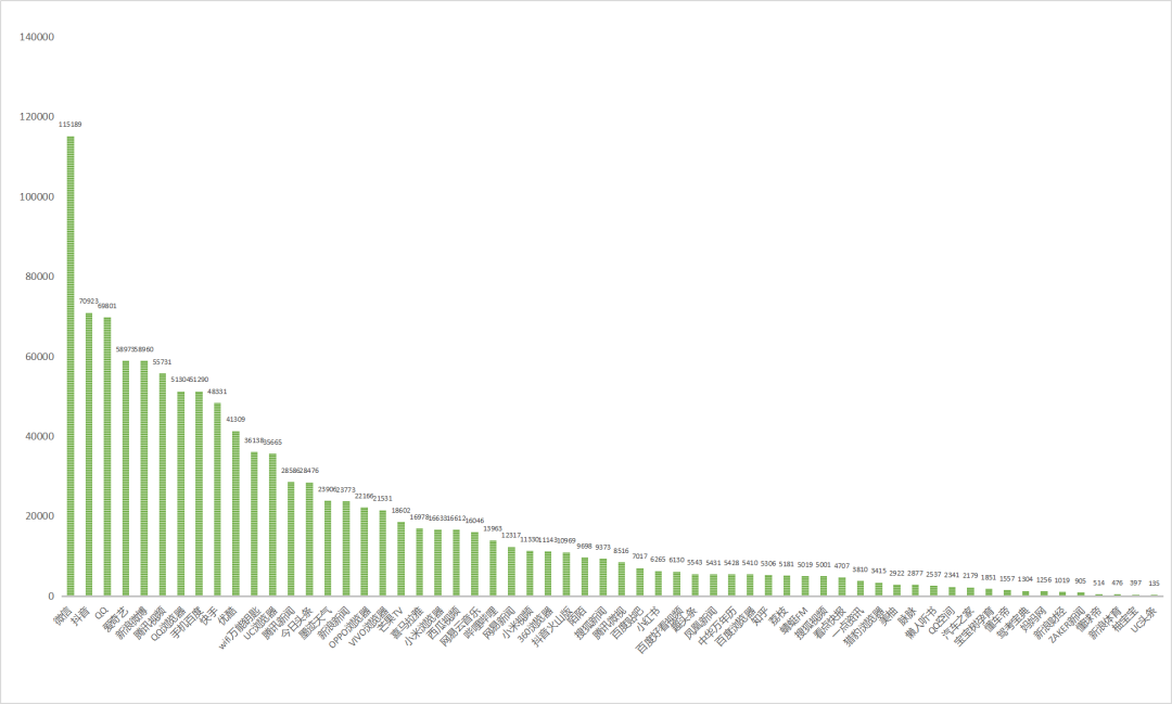 社交类平台——所统计到的7个社交平台,QQ空间 降幅最大为 2.3%,其次为陌陌降幅 1.8%,其他各平台均有小幅增长