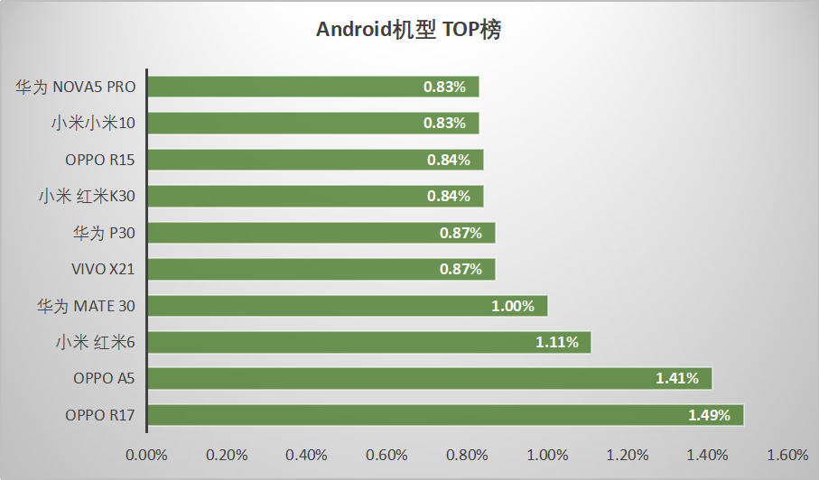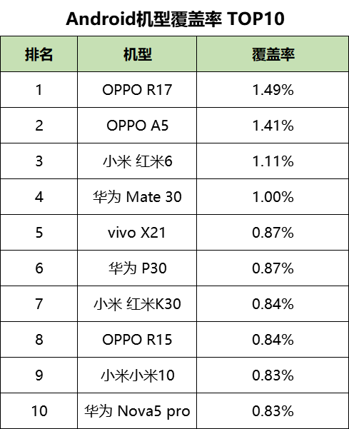 根据(2.8日 - 2.14日)区间数据统计的移动端设备覆盖率如下,有设备定向设置需求的艾豆可以参考选择。