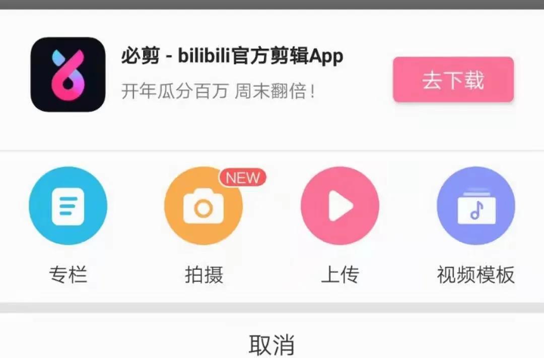 如果你认真看我上方入口区的截图,会看到有一个【有奖发布你的第一个视频】,点开首先是提示下载必剪(小破站自己的剪辑软件),在发布不仅有福利,下方还有必剪的新手教程。
