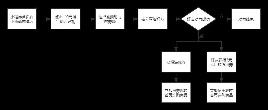 案例目标:通过邀请好友助力来为小程序引流,进一步以分发满减优惠券来促进用户购买转化,提升小程序的订单和流水。