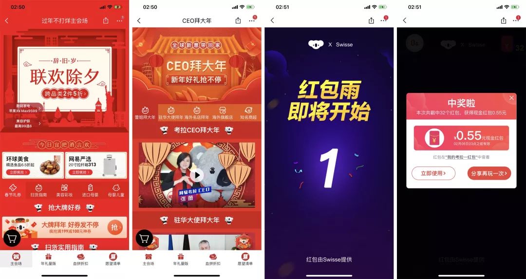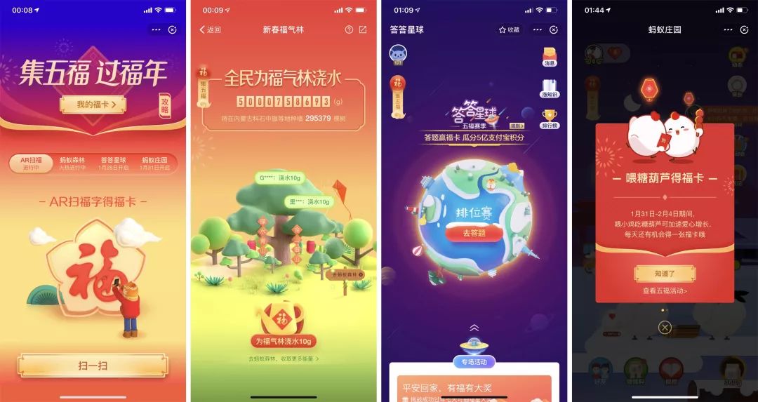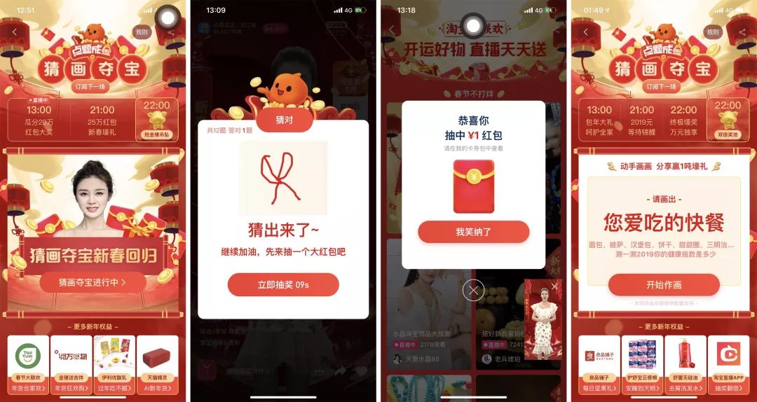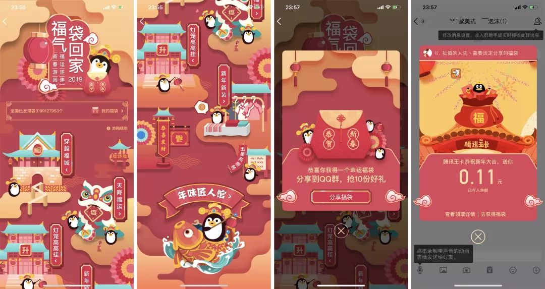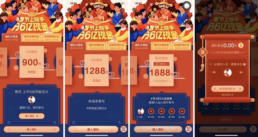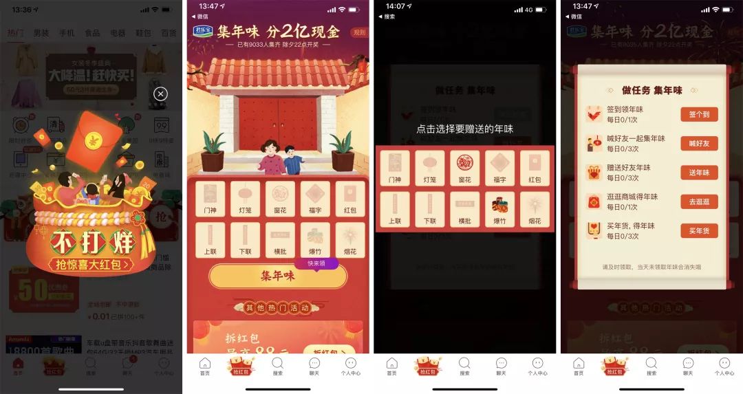 今年可以和去年的春节活动做一个简单的对比,看看这一年时间过去了,活动运营上面有哪些新东西出现,下面就来见证奇迹的开始。