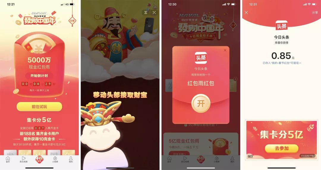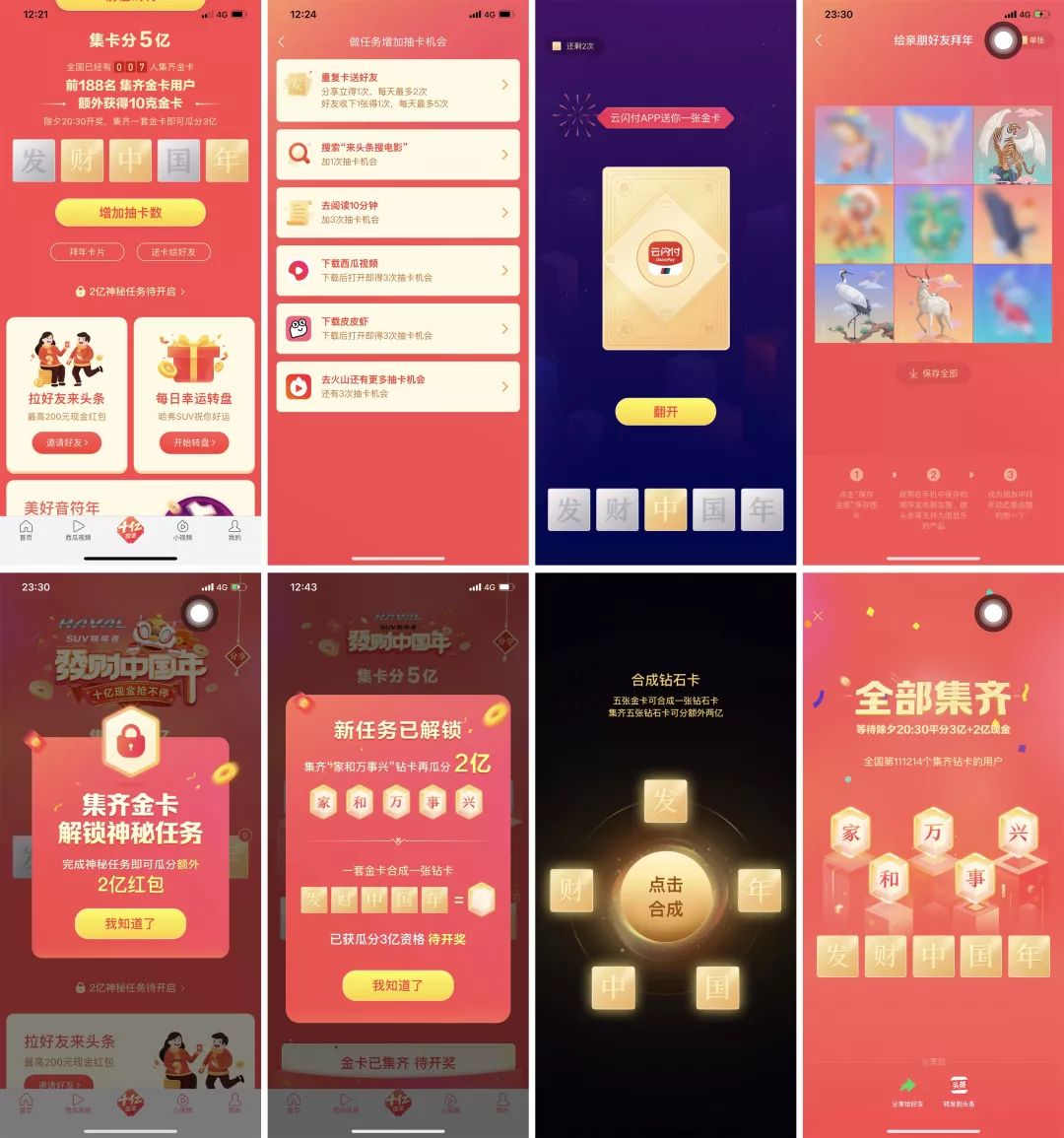也是一种集卡活动,集齐十种与过年相关的物品,可以分2亿现金红包.