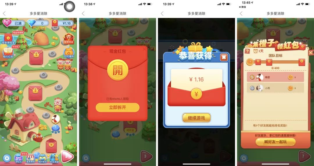 这个想法确实不错,利用了消消乐高频的游戏模式,加入了红包,用户的活跃度提升不少。