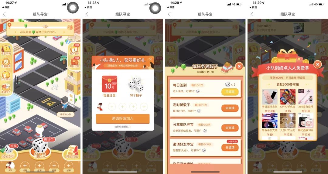 类似大富翁的玩法,摇骰子前进步数,通过日常行为动作,邀请好友和指定商品拼单获得骰子数量最多,通过贡献的步数可以领取最终的奖品,最高步数是22000步,可以免费获得登机箱,烤箱。