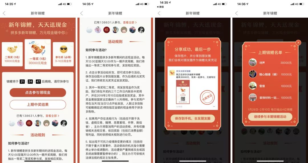 不知道过年拼多多的值班人员是不是比其他平台都要多很多,这么多的活动运营,不是几个人值班搞得定的。