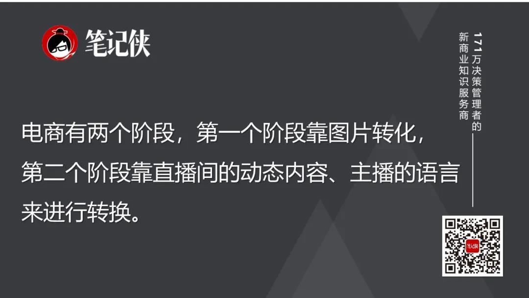 电商有两个阶段,第一个阶段靠图片转化,第二个阶段靠直播间的动态内容、主播的语言来进行转换。