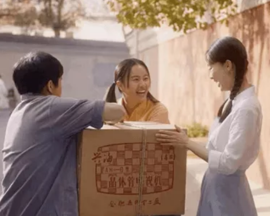 贾玲穿越后,做的第一件让妈妈高兴的事,就是抢电视,让妈妈成为全厂第一个拥有电视机的人。30年前,电视机可是有钱都买不到的抢手货,很多人甚至要找关系才能拿到“电视票”,影片中选用的正是合肥无线电二厂生产的“兴海牌”电视。