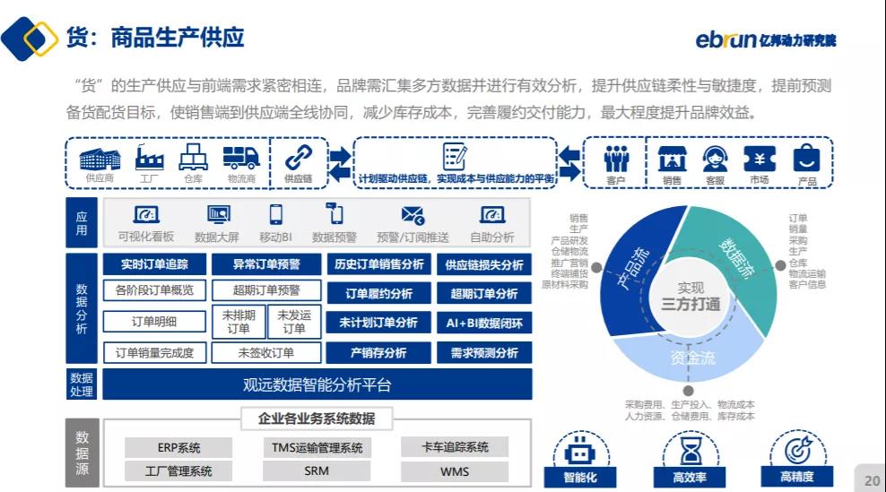另一方面看供应链,品牌前端的有效分析可提升供应链柔性与敏捷度,提前预测备货配货目标,使销售端到供应端全线协同,减少库存成本,完善履约交付能力,从而最大程度提升品牌效益。