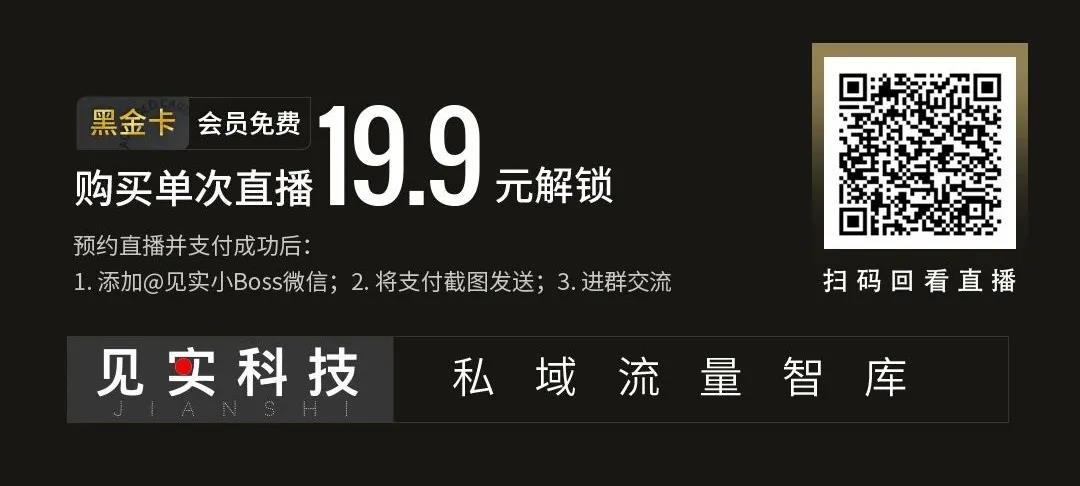 本文所选取部分,就是陈俊在见实·私域践行社2021春节学习季之【私域策略制定】这一话题直播中的部分实录。如下,Enjoy: