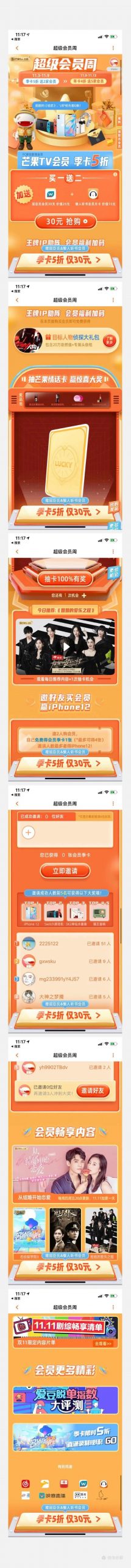 主色调用芒果TV的代表色橙色,并且头图加入了时间轴,让用户更容易明白活动节奏,把握参与时间。还充斥了各种实物豪礼,凸显主题的"超级"。