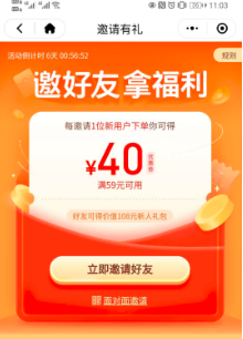 基础奖励:(满59元减40元)优惠券,最多领取28张