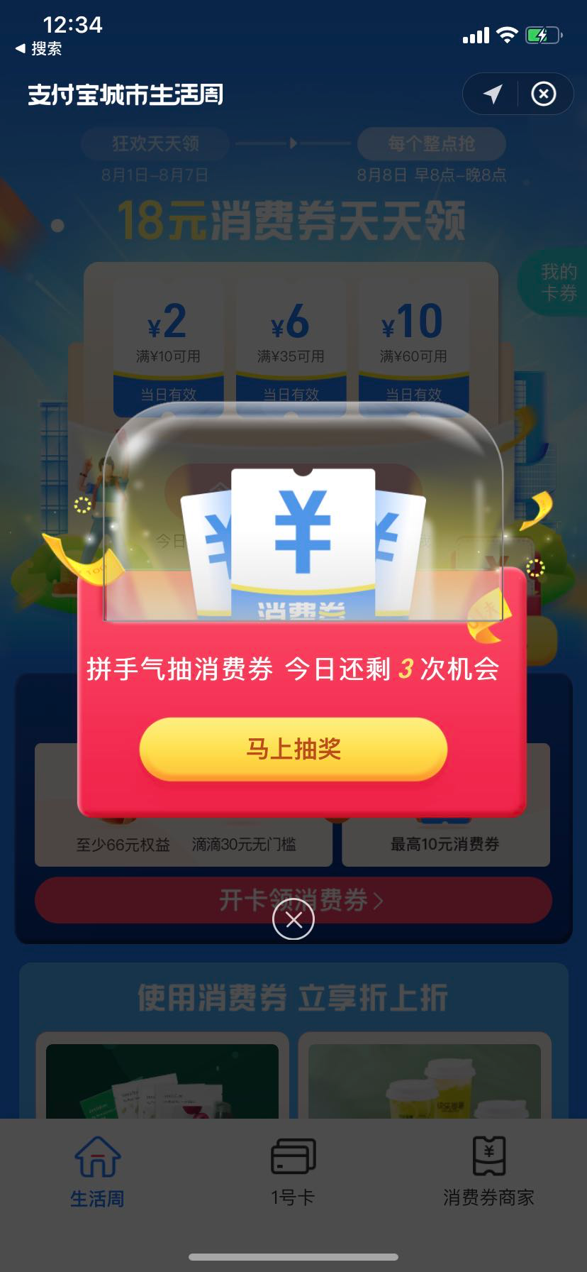 活动8月1日开始持续到8月7日,我在最后一天才发现这个活动,说明宣传的不够。例如我消费支付完成的页面,或者app的push都没有这个活动的露出。