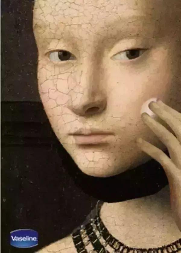 护肤品牌Vaseline的创意广告,把产品保湿功能与干裂的古董组合起来:足见其强大的保湿功效。