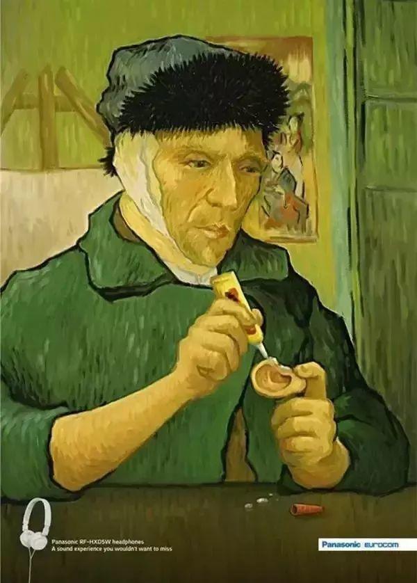 松下耳机创意广告,把耳机与大伙熟知的梵高割掉的耳朵组合起来,梵高都后悔想粘回耳朵,这耳机得有多好:A sound experience you wouldn’t miss。