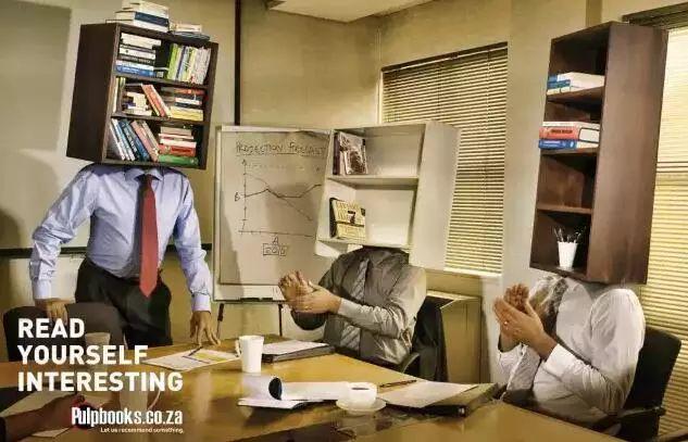 Pulp Books书店创意广告,把不同地位的人与不同的书架组合起来:看见了吗,真是书架决定地位啊,够直观吧?你读什么样的书,你就会成为怎样的人。