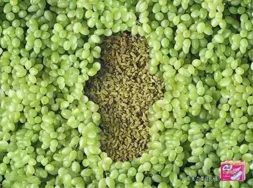 苏菲卫生巾的创意广告,把卫生巾的吸收能力与葡萄干组合起来:连葡萄都被吸成葡萄干了,吸收力就是这么强!