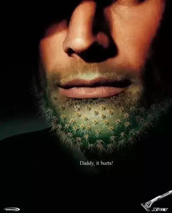 XPEC3剃须刀的创意广告,把男人的胡子与带满刺的仙人球组合起来:真是触目惊心,赶紧刮了吧!