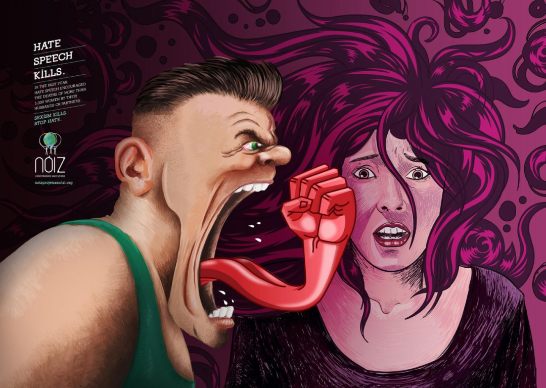 巴西NOIZ公益组织创意广告,把人的语言暴力与手枪、拳头这种实际的暴力组合在一起:反对语言暴力,它和真实暴力是一样极具伤害性。