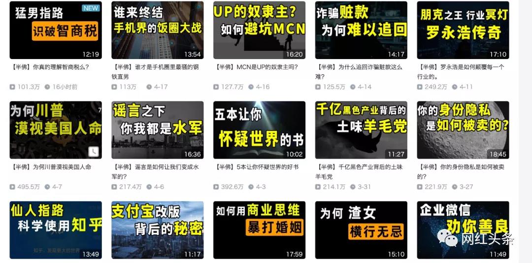 只要认真看了半佛的视频,就一定能强烈感受到他尖锐犀利却又不失幽默搞笑的个人风格,既有干货又有谈资而且网感很强,因而接受度非常高。
