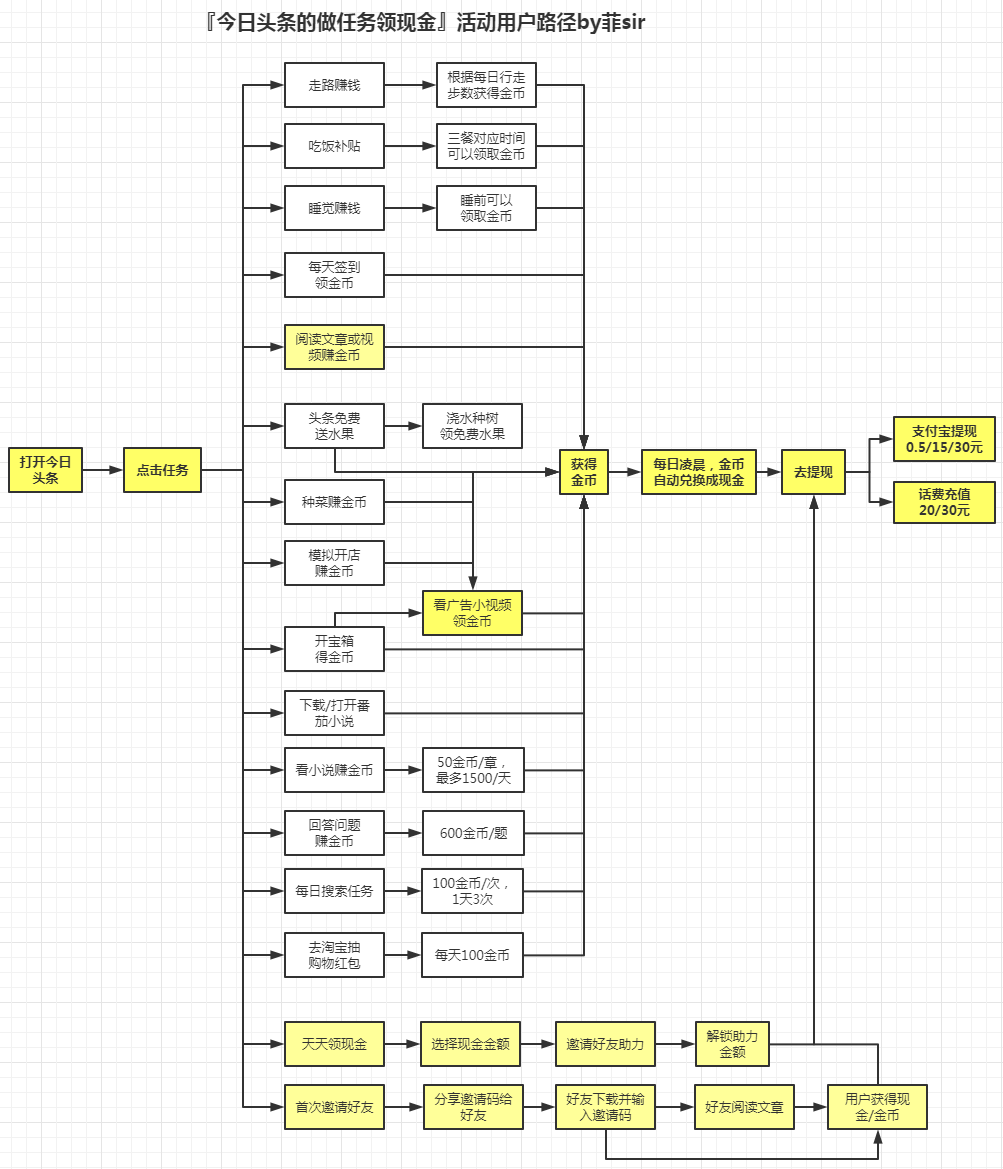今天分享的案例来自菲sir童鞋,所拆解的【今日头条】做任务领现金活动~