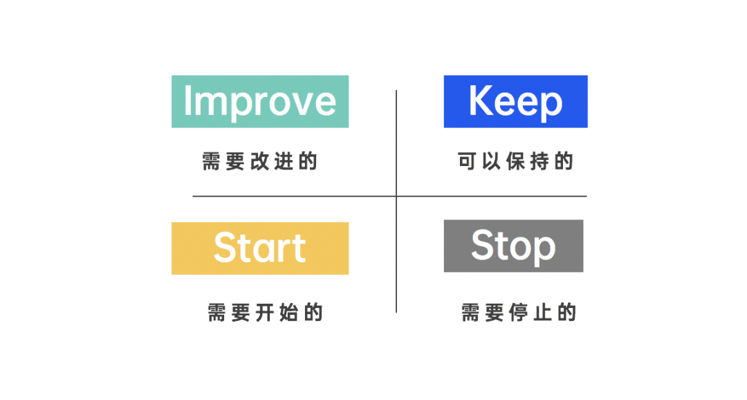 Start(需要开始的):哪些环节在本次活动中没有实施,而后续需要开始做的。