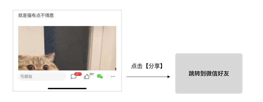 方案2:分享图标用微信替代,点击直接跳转到微信好友,简单粗暴,减少操作步骤,分享成功率高。