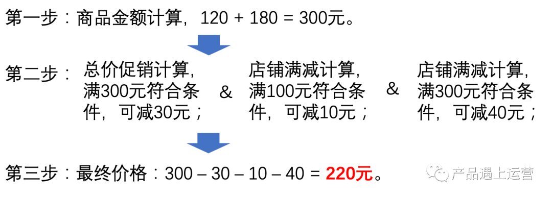 递进式促销:递进式门槛计算规则是以上一层级优惠扣减后的金额来看是否满足下一层级的优惠门槛。对于多种促销类型同时生效的商品,促销是有优先级的,计算中按优先级代入计算。例如,京东的递进式促销计算规则如下:
