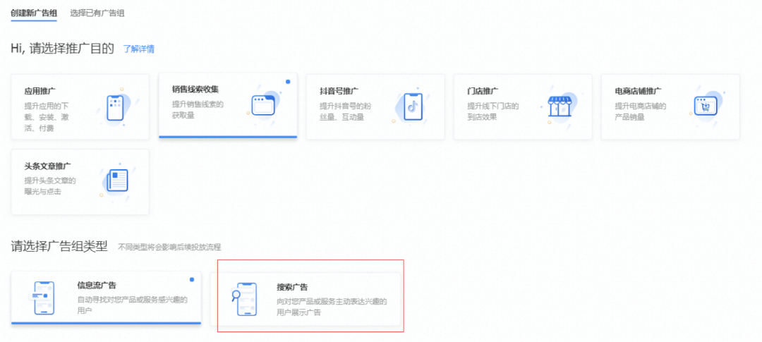 头条搜索的广告位现在是字节系的全产品,操作和百度、小搜都有差异。在形式上和头条信息流几乎一致,只是增加了关键词,关键词有三种匹配,精确短语和广泛。所以可以按照调头条信息流的方法来调搜索。