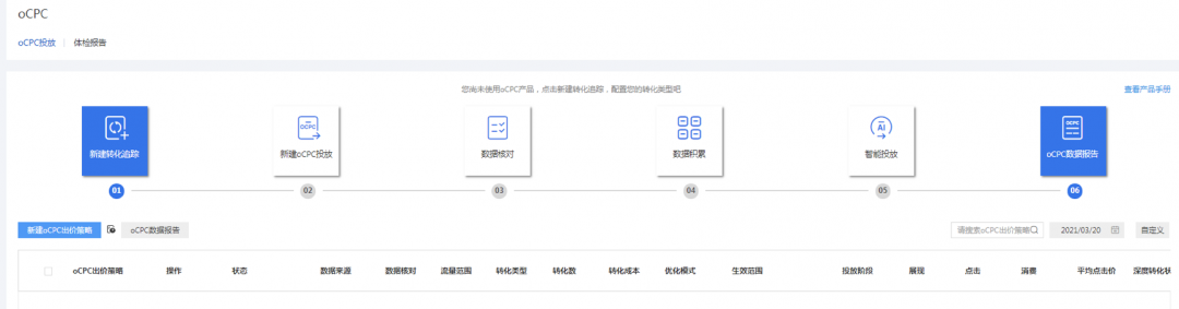 先建好转化跟踪。其次是搭建ocpc投放包。