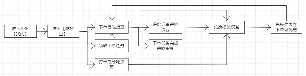 行为习惯:通过下单和签到打卡,当用户想要获取优惠券,不想通过付费的方式购买券包,会养成习惯经常来获取吃货豆,从而兑换相关优惠券权益