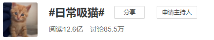 品牌选择以目标人群的喜好为出发点,在产品中融入了年轻人渴求的宠物元素,迎合他们“撸猫/狗”的生活态度,以此为契机去打造自己的自传播力。在微博上有不少拍摄猫的话题,#日常吸猫#、#超烂拍猫大赛#、#全民拍猫大赛#等,基本上每一个话题的讨论度都超高,仅仅日常吸猫话题,就产生了12亿阅读。