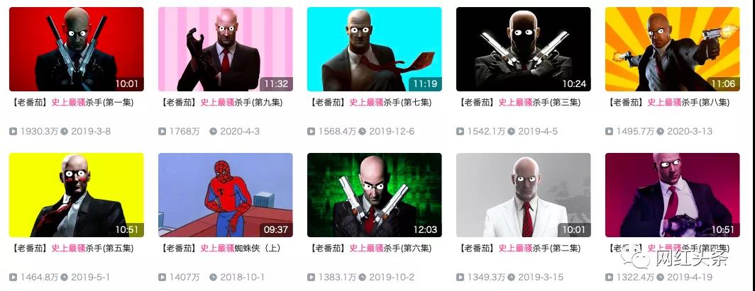 而在这方面老番茄都做的特别好,所以他制作的剧情向系列视频如《史上最骚杀手》系列、《史上最骚蜘蛛侠》系列都条条热门,播放都是上千万的程度。