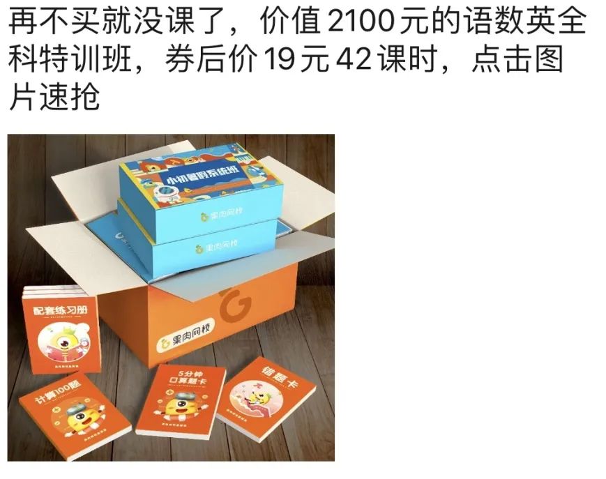 这张图片实事求是地展现了礼盒中包含的内容。让家长直观地了解到,报名参加此课程即可获赠相关的教辅礼包,体现了课程的附加值。