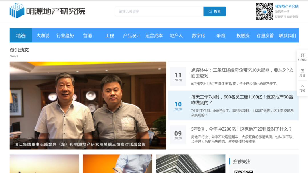 《明源地产研究院》公众号百万级粉丝,有官网和社群,百强房企领导人基本都采访过,公众号文章商业合作费用在10万以上。
