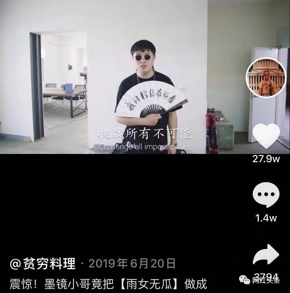 在短视频进入开始拍摄时,一桶油、一个锅、两个碗具,为了加强个人特色,他加入了自己喜欢的"说唱",黑色的墨镜上脸,个性十足的形象让贫穷料理很快就有了很多的粉丝。这是第一次转型。