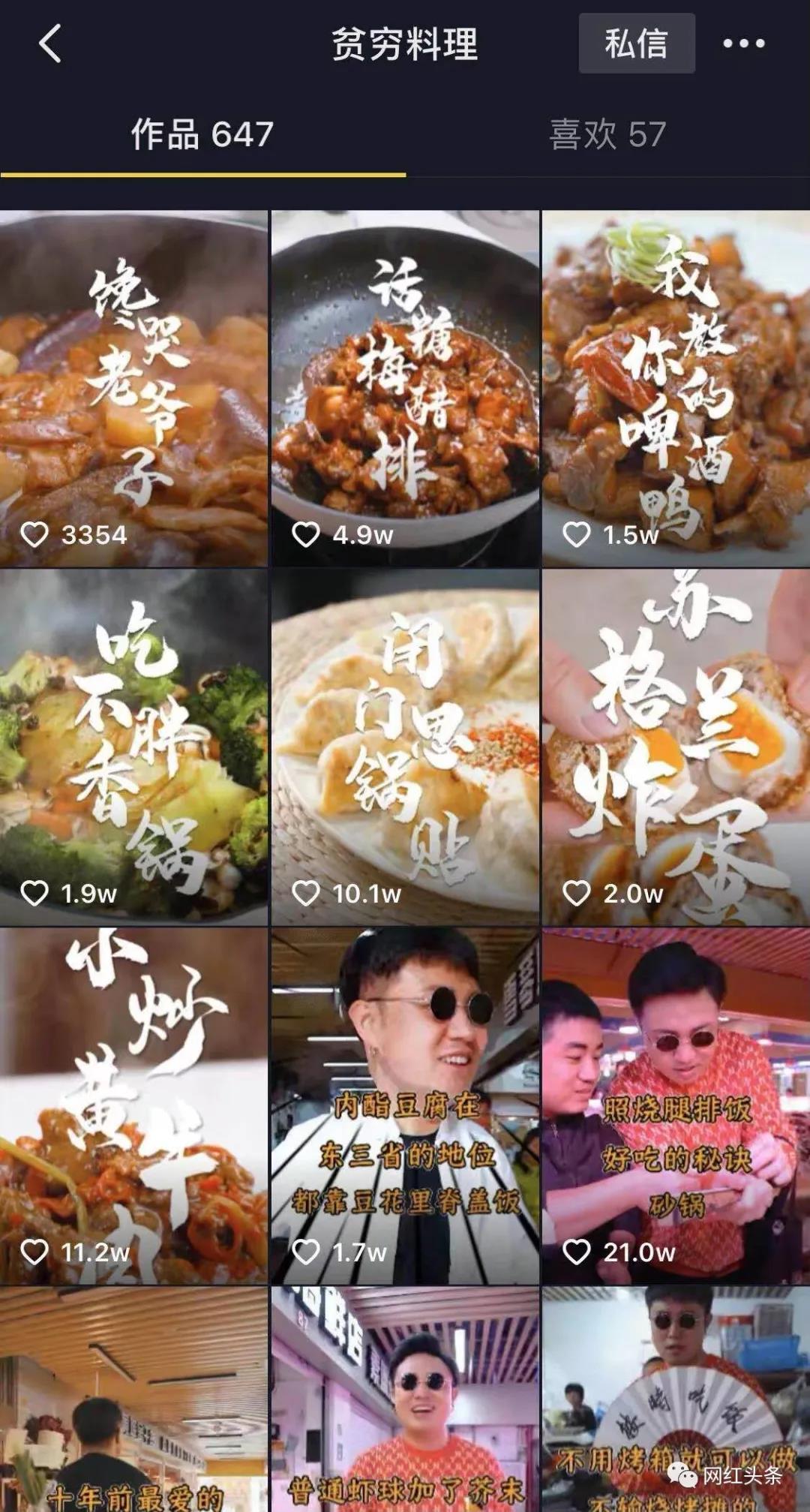 作为一个高产的美食博主,贫穷料理在抖音上的视频作品已有六百多个。