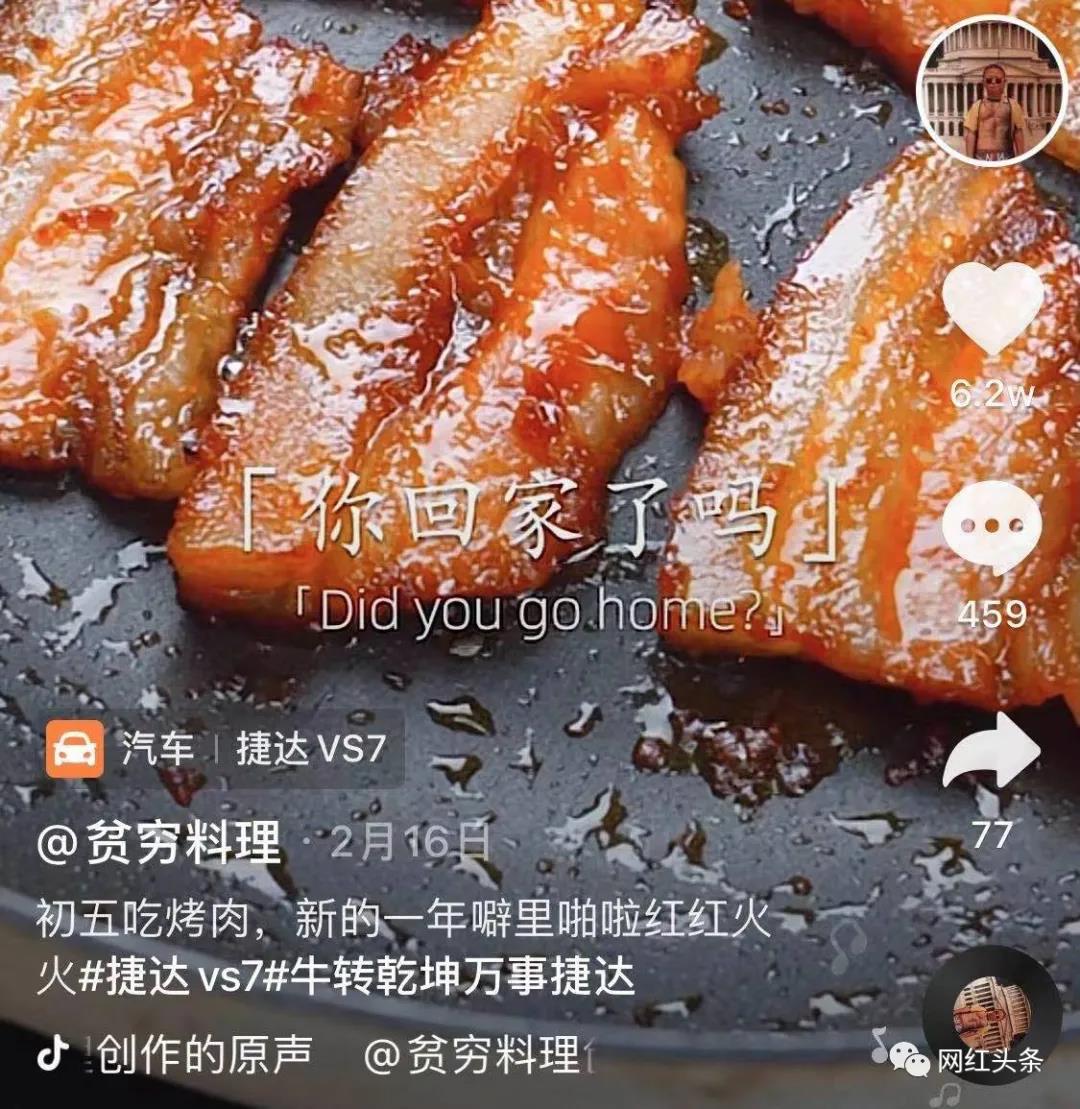 此外,好的宣传语也会加深观众对账号的印象。比如我们在刷视频时,会发现视频的文案内容十分有趣,创意的文案也能加大传播度。"贫穷只是暂时的,记得按时吃饭。"这句激励了一众年轻受众的贫穷料理结束语,成了粉丝喜闻乐见的一句话。