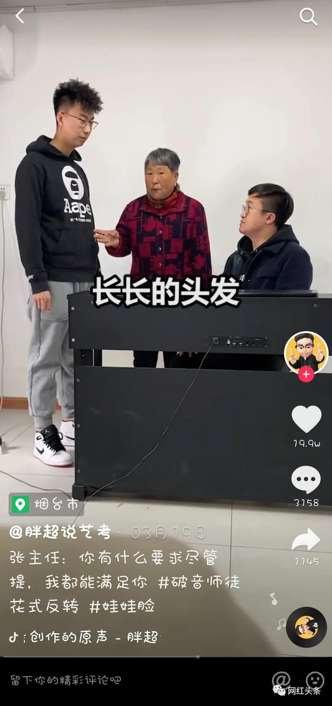 账号原本是以艺考培训过程中老师和学生的互动为主的娱乐向内容,其娱乐性和才艺展示的部分往往是视频的方向,在此基础上加入了新的模式,那就是学生与学生之间的互动,扩大了人员数量,增加让人捧腹的互动交流。