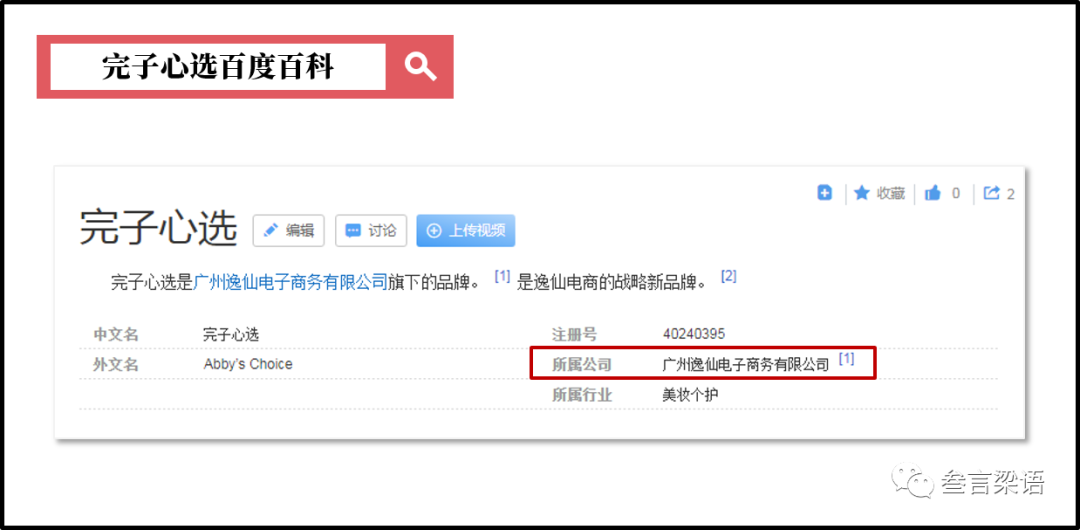 打开百度百科,我们可以了解到,完子心选所属公司为:广州逸仙电子商务有限公司,也就是完美日记的母公司。
