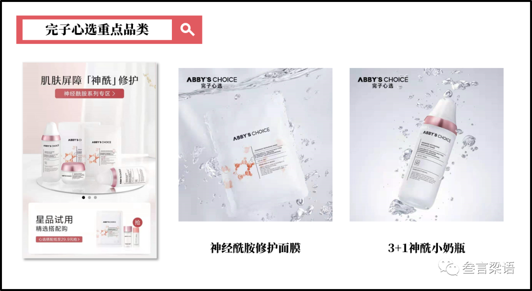 2019年7月,完子心选与完美日记联名推出会员专属系列「神经酰胺修护面膜」;