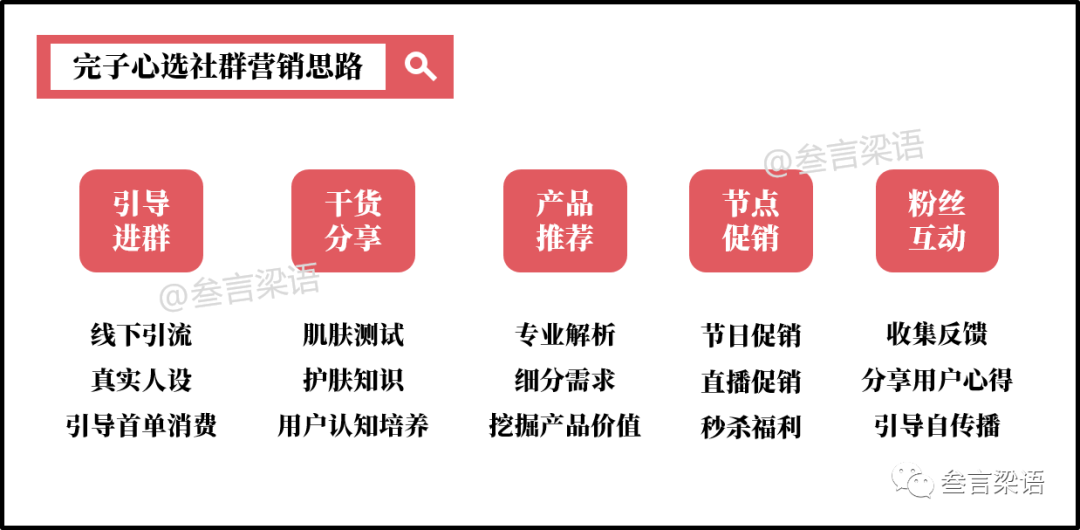 总结一下,完子心选的社群营销思路主要包括5个部分: