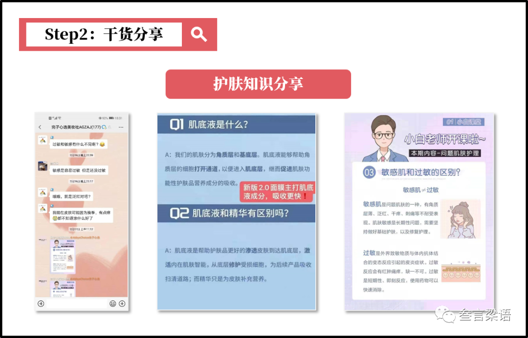 在日常,社群会给大家分享各种护肤小知识,比如: