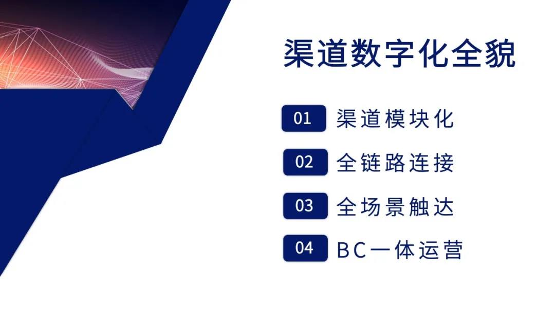 渠道模块化,全链路连接,全场景触达,BC一体化运营。渠道数字化模式基本定型。