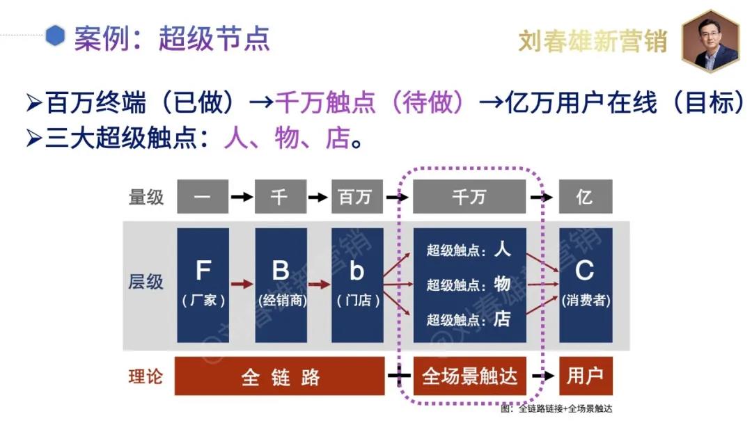 全场景触达,这是一项全新的工作。快消品行业龙头通过深度分销已经深入"百万终端",但数字化要求"亿万在线",所以,必须有"千万触点"完成亿万触达。