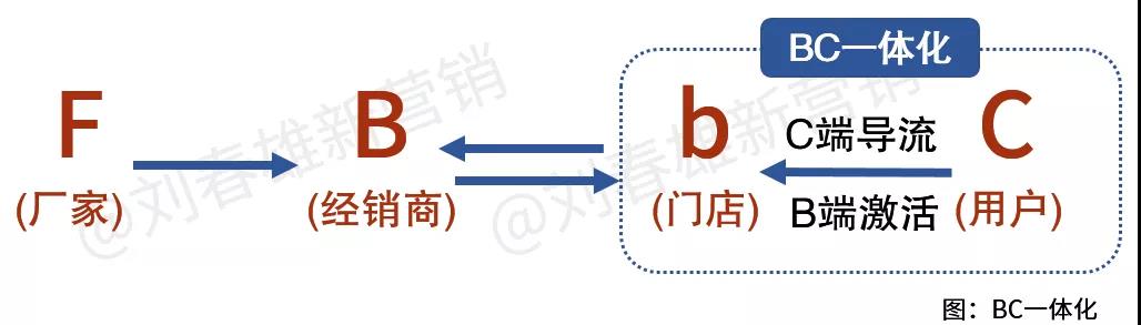 厂家(F)→经销商(B)→零售店(b)→KOC→用户(C)