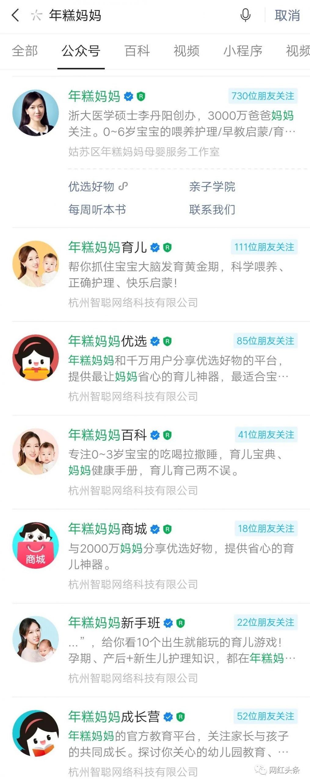 "年糕妈妈育儿,年糕妈妈百科,年糕妈妈新手班,年糕妈妈新手营"(教育)这四个号各有侧重。